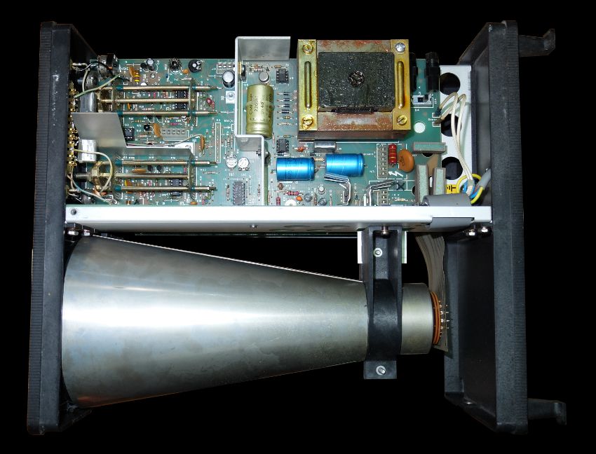 J'ai utilisé cet oscilloscope au début des années 1980. Pas de chance, sur les deux dont je disposais alors, les deux sont tombés en panne quasiment en même temps : capa haute-tension HS. Je crois me souvenir qu'il s'agit de C30 sur le schéma (disponible ici), 1000pF 6000V.